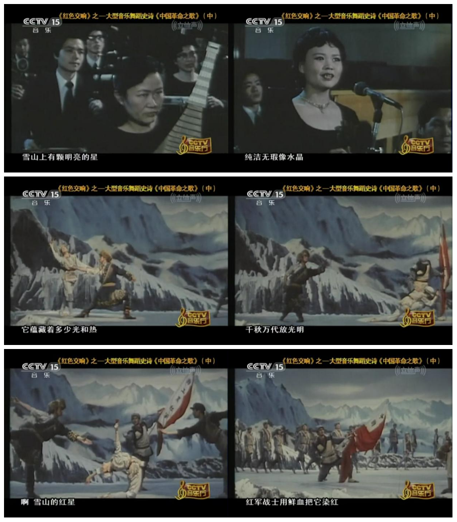 而在音樂(lè)與舞蹈的融合道路上,創(chuàng)作于1984年的大型音樂(lè)舞蹈史詩(shī)《中國(guó)革命之歌》,邁向了一種更為宏大的藝術(shù)形態(tài)。作品融舞蹈、音樂(lè)、朗誦與舞臺(tái)視覺(jué)于一體,以全景敘事回溯革命征程。其中第三時(shí)期的片段《紅軍不怕遠(yuǎn)征難》,以“雪山紅星”為核心意象,在交響樂(lè)、合唱與舞蹈的交織中,唱響了那段艱苦卓絕的歷程。