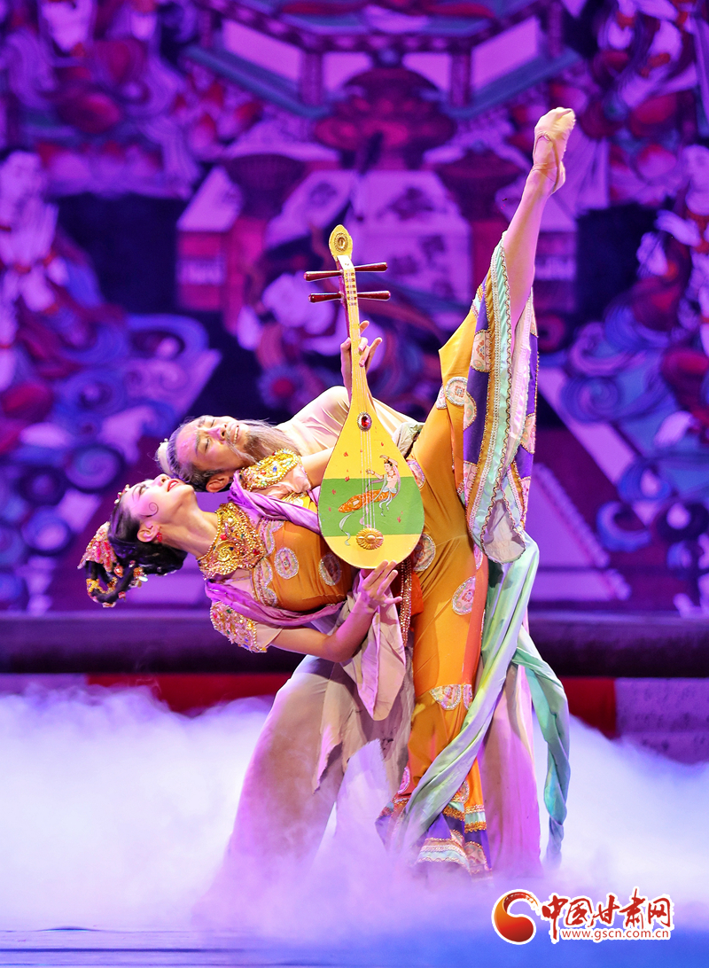 絲路漫漫、駝鈴聲聲……演出當(dāng)晚,演員們以精湛投入的表演,唱響了絲綢之路的友誼贊歌,同時也為觀眾展開了一幅“活的敦煌壁畫”,從敦煌彩塑和壁畫中提煉出的“千手觀音”“反彈琵琶”“憑欄仙女舞”“霓裳羽衣舞”等舞蹈在舞臺上一一呈現(xiàn),深深打動了現(xiàn)場觀眾,贏得無數(shù)掌聲與喝彩。