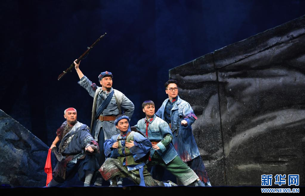10月6日,演員在表演現(xiàn)代京劇《突圍·大別山》。新華社記者 張浩然 攝