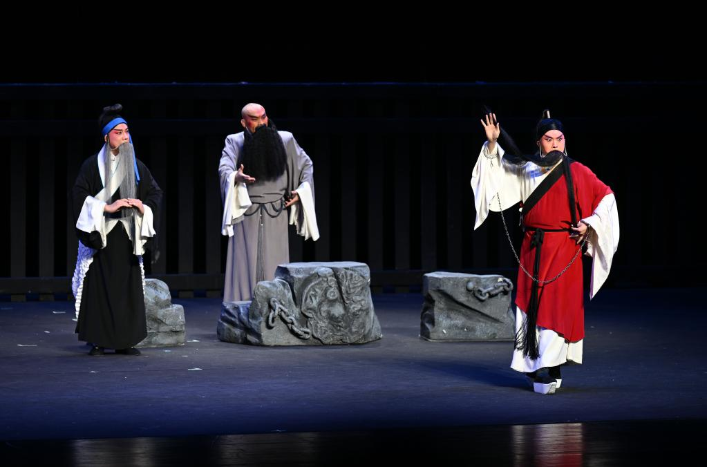 1月19日,青年顧炎武飾演者楊陽(右)在演出中。當日,作為“相約北京·遇見江南”蘇州文化藝術展示周精品展演劇目之一,原創(chuàng)昆劇《顧炎武》在北京天橋劇場上演。該劇由江蘇省演藝集團和昆山當代昆劇院聯(lián)合出品,展現(xiàn)了明末清初大儒顧炎武“天下興亡 匹夫有責”的家國情懷。新華社記者 金良快 攝