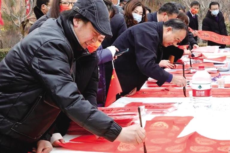 在此次活動中,省文旅廳組織向靜寧縣捐贈了藝術(shù)普及高質(zhì)量發(fā)展、智慧圖書館、三館一站免費開放、戲曲進鄉(xiāng)村、“春綠隴原”文藝展演、文化人才服務(wù)支持等項目經(jīng)費共計324萬元。活動現(xiàn)場,還向群眾贈送了數(shù)字文化資源光盤及1000余份省內(nèi)旅游宣傳資料;組織市級非遺傳承人開展手工技藝展示,向群眾贈送窗花及“福”字等剪紙作品;組織書畫專業(yè)人員為群眾寫春聯(lián)、送書畫,受到群眾的熱烈歡迎,為即將到來的虎年春節(jié)增添了濃濃的喜慶氛圍。