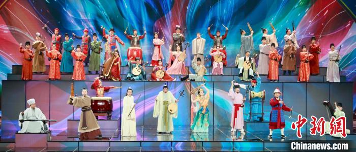 開(kāi)場(chǎng)節(jié)目《齊天樂(lè)》中,以神舟十三號(hào)航天員王亞平在空間站奏響經(jīng)典旋律《茉莉花》為序曲,將中國(guó)空間站傳來(lái)的太空音樂(lè)祝福和晚會(huì)現(xiàn)場(chǎng)激昂的民樂(lè)演奏巧妙融合。中華文化史上與民樂(lè)相伴的十組傳奇人物齊聚一堂,從斗琴到合鳴,演繹了一曲融合琴、簫、笙、阮、鼓、琵琶、箜篌、二胡、嗩吶、羯鼓等十種代表性民族樂(lè)器的創(chuàng)意交響。