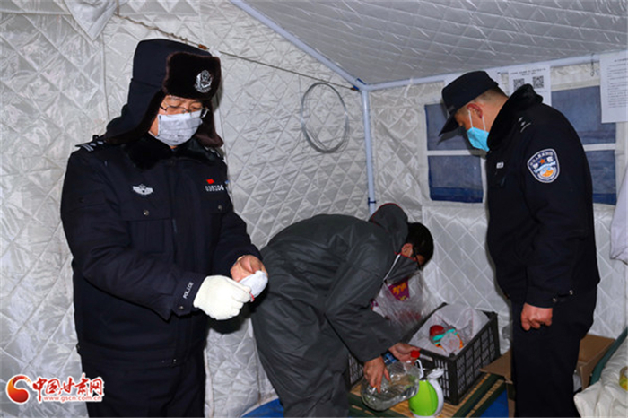 該點海拔近兩千米,晝夜溫差大,夜晚寒風肆虐,氣溫驟降,但這并未打消景泰公安抗擊疫情的熱情。年近57歲的老民警寇宗金帶領年輕民警方連儒從大年初二就一直堅守在這個檢測點,最大程度做好疫情防控檢測工作。