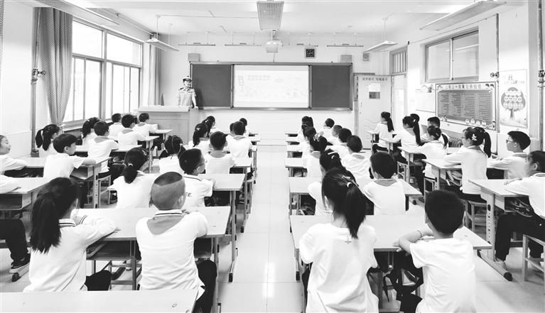 為增強暑期學生們的交通安全意識,7月13日上午,蘭州市公安局交警支隊城關大隊交警走進轄區(qū)秦安路小學南校區(qū),開展暑假前交通安全教育活動。其間,交警結(jié)合交通安全課件,現(xiàn)場給學生們講解日常出行時應注意的交通安全常識。隨后,交警告訴同學們要學會“知危險 會避險”,過馬路時一定要注意避讓來往車輛,確保人身安全,并呼吁同學們要自覺養(yǎng)成安全正確文明的出行習慣。同學們熱情踴躍,在趣味十足的互動中輕松愉快地學習了交通法律法規(guī)。