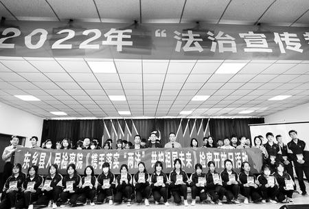 東鄉(xiāng)縣檢察院和民族中學(xué)共同舉辦“攜手落實‘兩法’共護祖國未來”檢察開放日宣講活動(2022年5月31日拍攝)?!      |鄉(xiāng)縣檢察院供圖