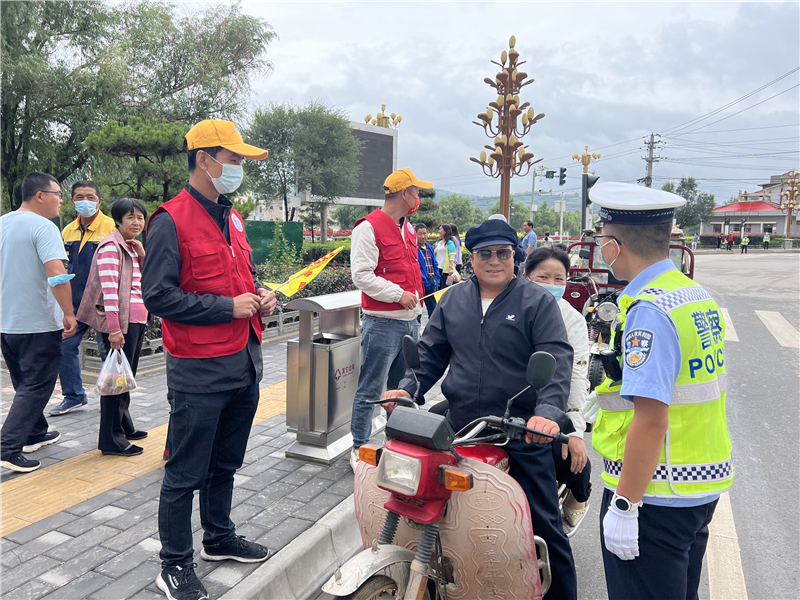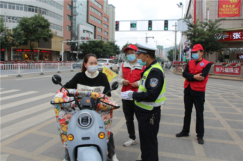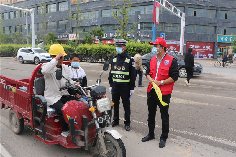 9月28日上午,參加“駕駛?cè)藢W(xué)習(xí)教育體驗”活動的記滿分駕駛?cè)苏诟拭C定西岷縣小南門十字路口對不文明交通行為認(rèn)真的進(jìn)行著勸導(dǎo)。