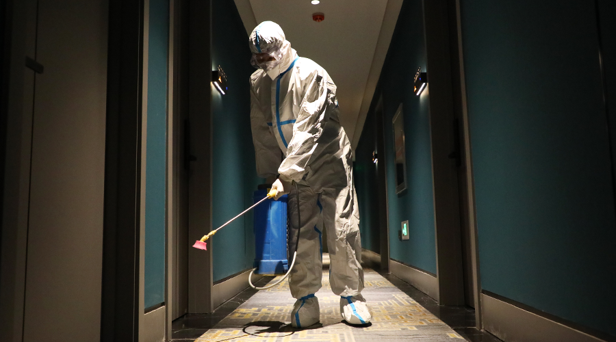 張九夫每天出現(xiàn)在點(diǎn)位的次數(shù)太多了,穿著防護(hù)服的瘦高身影和那標(biāo)志性俯身下去的動(dòng)作,再配上一個(gè)遮住大半邊臉的口罩??匆谎?,大家就知道——九夫來了。長時(shí)間的相處,張九夫與戰(zhàn)友們之間多了一分相互了解,他也用獨(dú)有的幽默和關(guān)心消去了戰(zhàn)友們的疲憊。徐洪濤笑著說:“他每天都和我說要每天新學(xué)一道菜,讓我品嘗他的黑暗料理。”完成消殺作業(yè)的同事們說起張九夫,一掃疲憊,常常笑得彎下腰。
