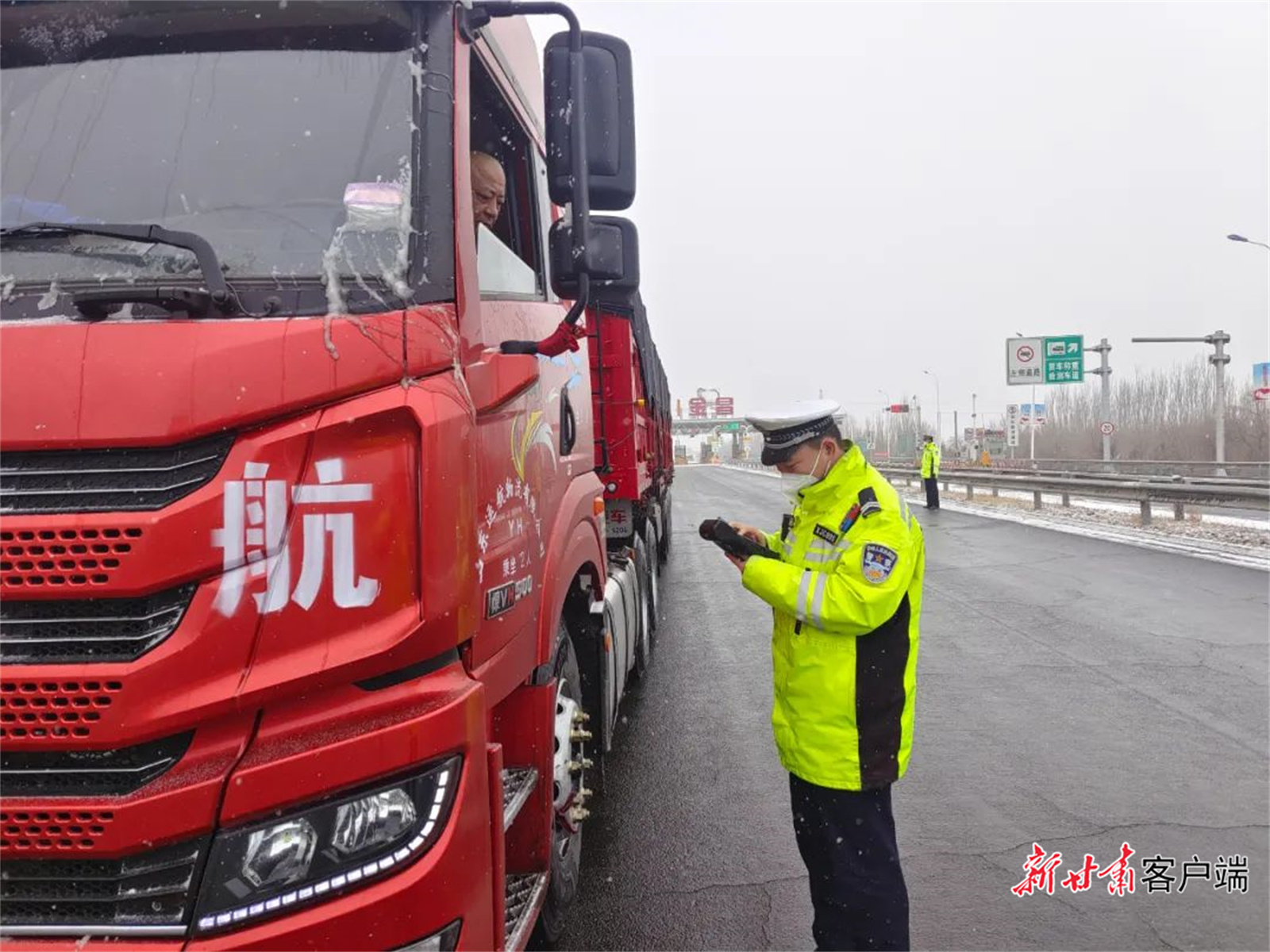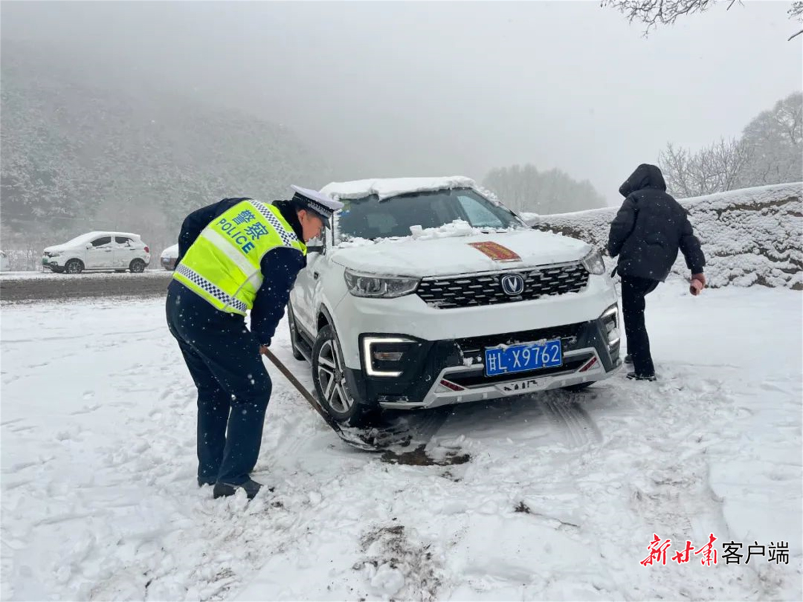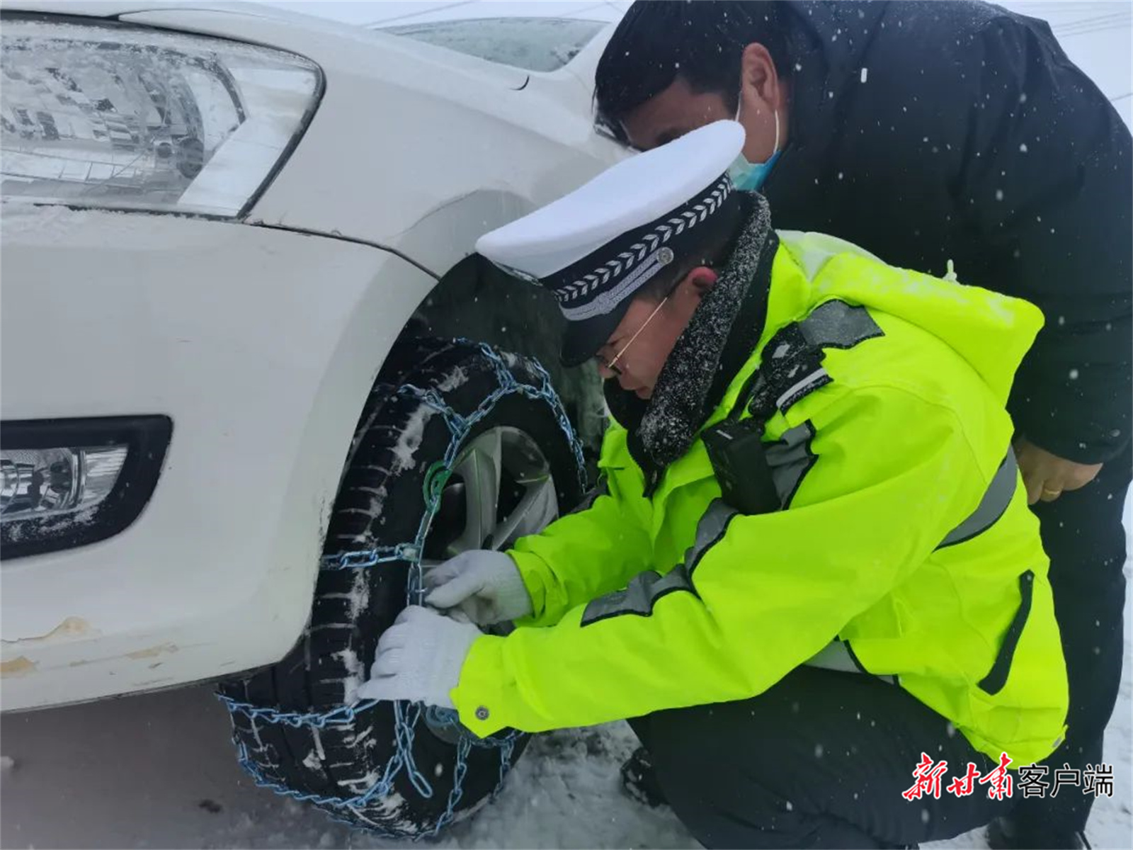 新甘肅客戶端訊(新甘肅·每日甘肅網記者 萬及敏)2月8日上午,甘肅多地出現(xiàn)降雪天氣,部分道路出現(xiàn)積雪結冰現(xiàn)象。為最大限度保障群眾出行安全,預防和減少道路交通事故的發(fā)生,全省公安機關1.2萬公安民輔警奮戰(zhàn)一線,加大重點路段巡邏管控力度,采取預警提示、除冰、引導車輛減速慢行、封閉道路、幫助群眾推車等措施,嚴防交通事故發(fā)生,為群眾的平安出行保駕護航。