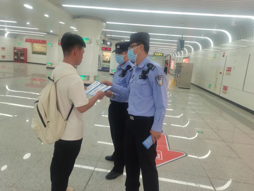 依托地鐵主陣地,發(fā)揮地鐵日均60萬客流優(yōu)勢,在27個地鐵站懸掛反電詐、防范打擊養(yǎng)老詐騙橫幅標語;在全線網(wǎng)絡電視屏、車載電視、導乘屏滾動播放反電詐宣傳視頻,積極營造宣傳氛圍,提高群眾識詐、反詐意識