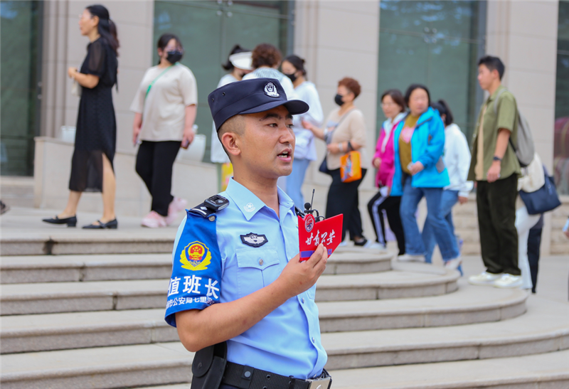 “我們?cè)诓┪镳^內(nèi)部開(kāi)展游客分流、提醒引導(dǎo)、巡邏防控、排查安全隱患等工作,全力為游客打造隱患少、服務(wù)好的平安游覽環(huán)境。同時(shí),我們的交警同事也在周邊道路積極開(kāi)展道路交通疏導(dǎo),根據(jù)車(chē)流量情況在不同路段進(jìn)行分流,保障游客車(chē)輛安全有序通行。”西站派出所副所長(zhǎng)魏相昆說(shuō),“甘肅省博物館周邊停車(chē)緊張,提醒游客盡量乘坐公共交通工具,如遇突發(fā)情況請(qǐng)及時(shí)和我們執(zhí)勤民警聯(lián)系,我們會(huì)全力提供幫助。”