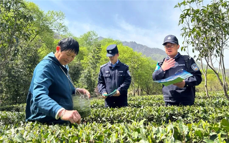 清明節(jié)后,隴南市康縣的茶樹鮮嫩的新芽迎風(fēng)而立,茶農(nóng)們穿行在茶樹間熟練地采摘嫩芽,同樣忙碌不歇的還有轄區(qū)派出所的民警們,他們上茶山、進(jìn)茶園、問需求、解糾紛,成為春茶豐收畫卷中的一抹別樣的“警”色。