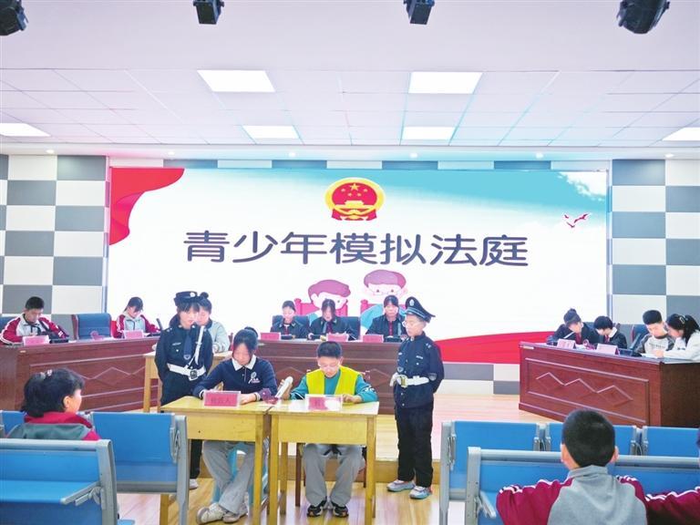 首先,在李青源律師的悉心指導(dǎo)和同學(xué)們的踴躍參與下,經(jīng)過前期的認真彩排,同學(xué)們以模擬法庭的形式現(xiàn)場模擬了一起因校園欺凌導(dǎo)致的刑事訴訟案件。參與庭審活動的學(xué)生們沉浸式、體驗式、互動式參與其中,有序扮演著審判長、公訴人、辯護人等角色?;顒右沧屧趫龅钠渌瑢W(xué)認識學(xué)習了法庭審判的全過程,身臨其境感受了校園欺凌會產(chǎn)生的嚴重后果,以及法律的威嚴,引導(dǎo)青少年學(xué)會用法律保護自己。