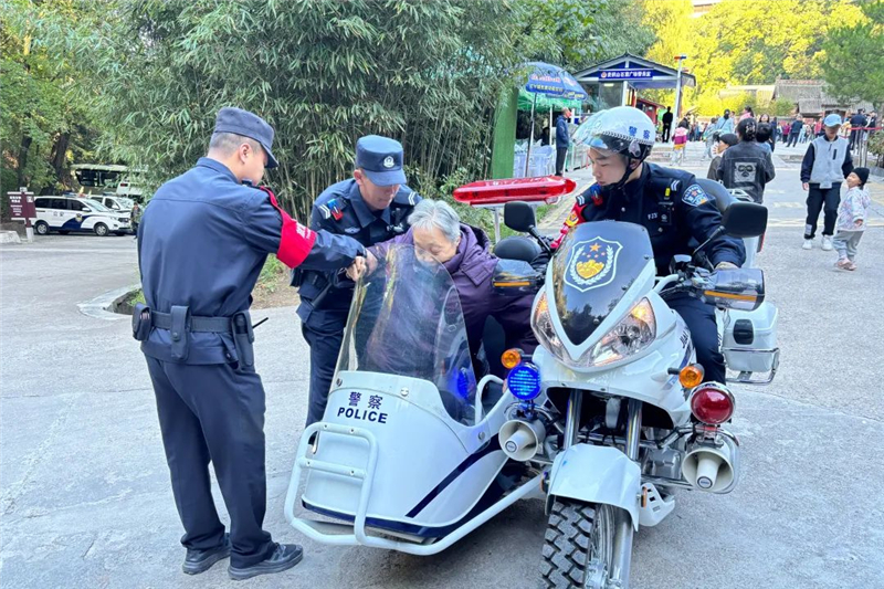 10月2日,一名陜西渭南游客向麥積山大景區(qū)派出所求助說,其母親由于年紀較大,已經(jīng)走不動了,需下山前往酒店休息,希望民警幫忙聯(lián)系車輛。隨后,旅游警察用警用摩托車送老人下山,安全到達山下停車場。