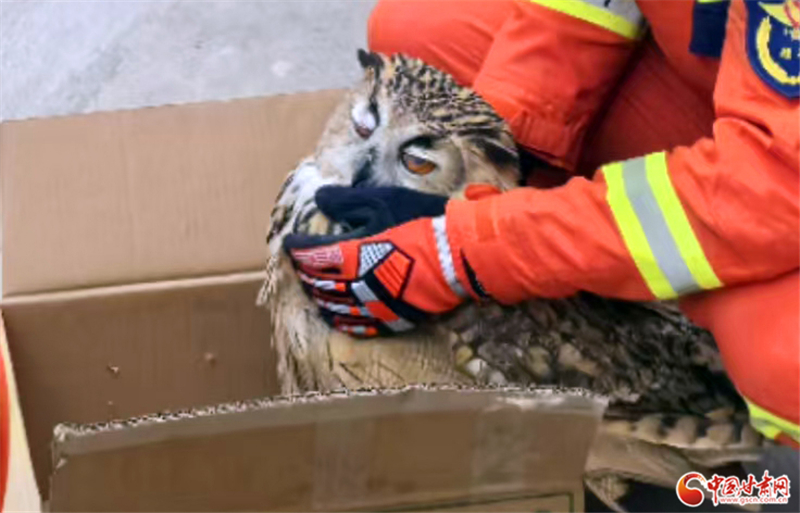 經(jīng)工作人員辨認(rèn),該鳥類為雕鸮,屬國(guó)家二級(jí)保護(hù)動(dòng)物,經(jīng)檢查該雕鸮無(wú)外傷,符合放生條件,遂將其帶到安全區(qū)域后放回了大自然。