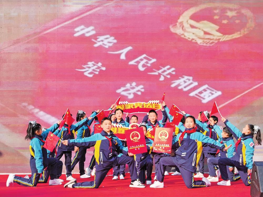 張掖路小學(xué)學(xué)生演出情景歌舞《憲法伴我們成長(zhǎng)》。12月4日,蘭州市在市民廣場(chǎng)舉行2024年“12·4”國家憲法日暨憲法宣傳周活動(dòng)。 新甘肅·甘肅法治報(bào)記者楊丹攝