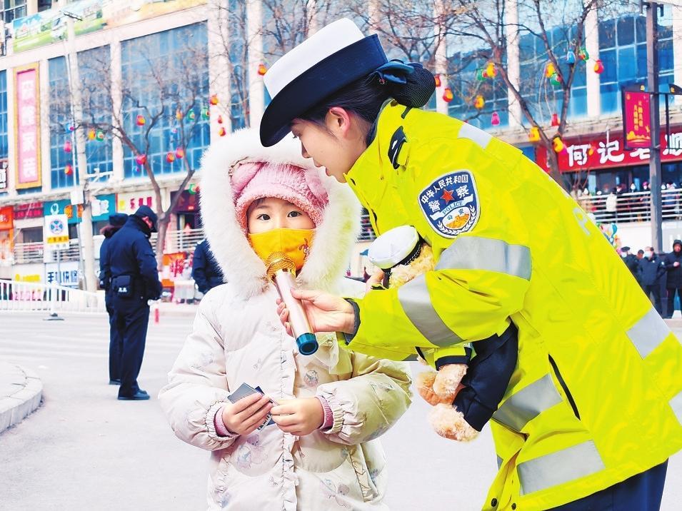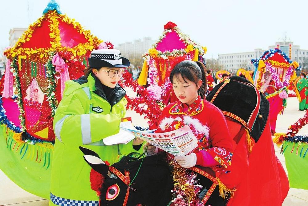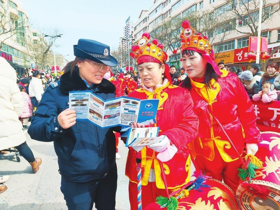 2月11日,合水縣公安民警巧借民俗活動群眾聚集的有利時機(jī)開展交通安全宣傳活動。新甘肅·甘肅法治報通訊員李曉攝