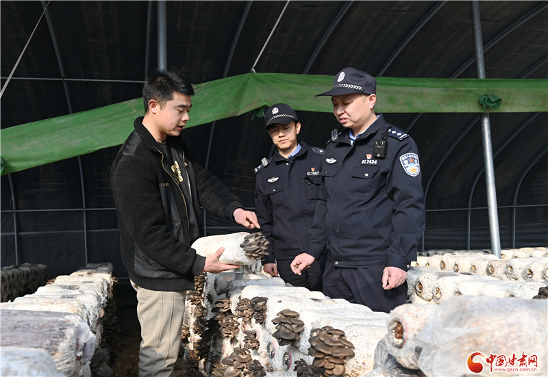 在西固區(qū)新城鎮(zhèn)青石金庭生態(tài)產業(yè)園,西固分局新城派出所民警宋振浩正在和蘑菇種植戶郭先生拉家常,詳細了解生產經營情況,詢問實際困難和需求。