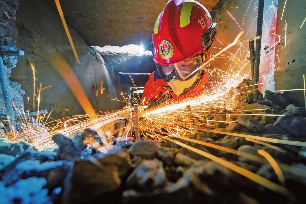 眼看就要取得勝利,余震突然來襲,救援現(xiàn)場(chǎng)可能出現(xiàn)二次坍塌的風(fēng)險(xiǎn)。救援人員迅速組織人員撤離,在確保現(xiàn)場(chǎng)環(huán)境安全后對(duì)風(fēng)險(xiǎn)點(diǎn)進(jìn)行支撐加固處理,再次展開救援。