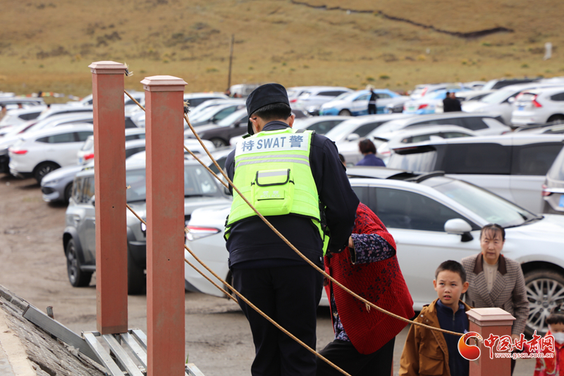 “十一”期間,記者來到天祝,在一個個景點,隨處可見“藏藍(lán)”的身影,他們或駐守在景區(qū)臨時停車場,或穿行在景區(qū)人潮深處,熱情服務(wù)游客,繪就秋日最美畫卷……