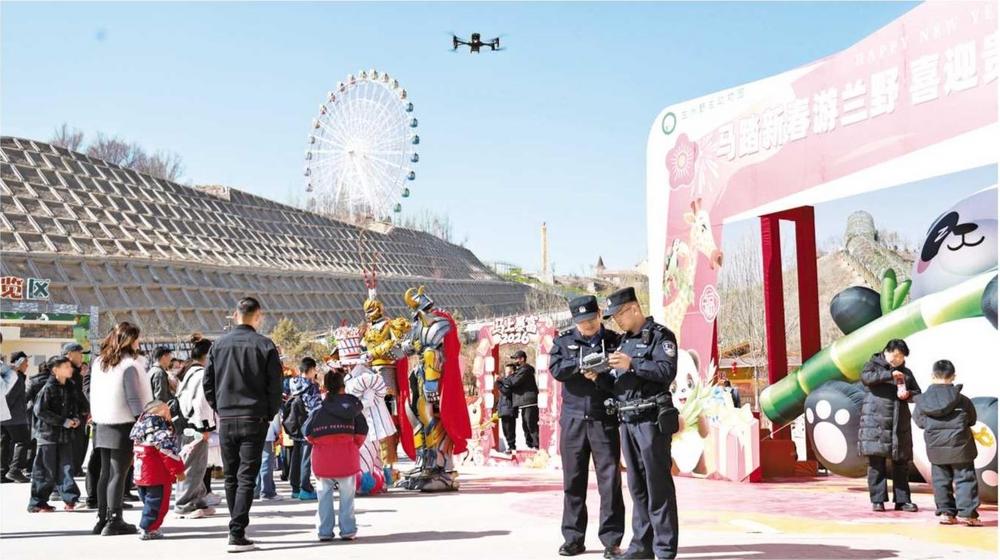 春節(jié)假期,蘭州市公安局安寧分局民輔警在景區(qū)護(hù)航游客安心游玩。新甘肅·甘肅法治報(bào)通訊員 張軍揚(yáng) 攝