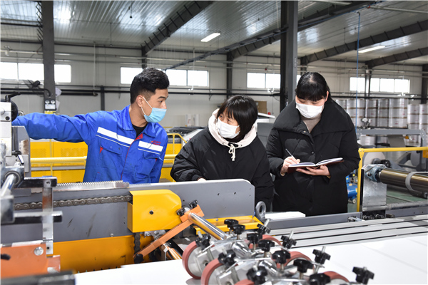 為切實幫助復(fù)工復(fù)產(chǎn)企業(yè)解決實際困難,安徽省滁州市南譙區(qū)紀(jì)委監(jiān)委女干部們組成“巾幗服務(wù)隊”,深入企業(yè)生產(chǎn)加工車間,開展調(diào)研走訪,跟進(jìn)督促政策落實。(安徽省滁州市南譙區(qū)紀(jì)委監(jiān)委 孫煒 攝)