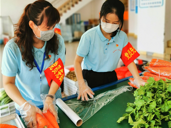 海南省保亭縣紀(jì)委監(jiān)委第一黨支部組織黨員先鋒隊下沉一線,保障疫情期間群眾的蔬菜供應(yīng)。(海南省保亭縣紀(jì)委監(jiān)委 王秋婷 攝)