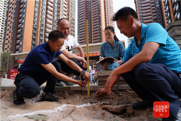 云南省昆明市西山區(qū)駐村一線紀(jì)檢監(jiān)察員對城中村改造道路施工質(zhì)量進行督查,確保路基建設(shè)質(zhì)量,建人民滿意工程。(云南省昆明市西山區(qū)紀(jì)委監(jiān)委 尹彪 攝)
