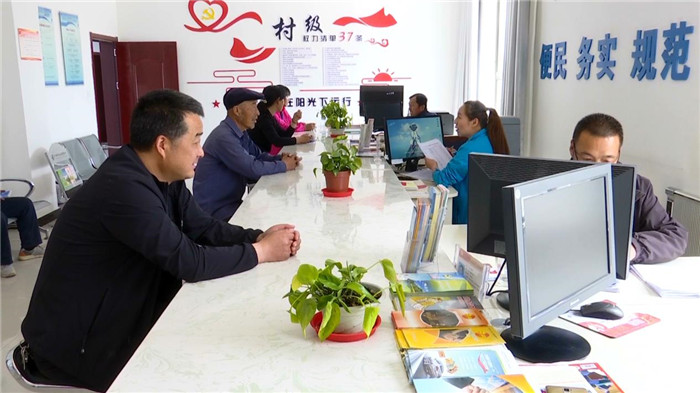 圖為玉門市黃閘灣鎮(zhèn)梁子溝便民服務大廳,工作人員按照“玉門市村級權力清單37條”規(guī)定程序,為村民辦理低保救助申請、戶口遷入遷出、林木采伐手續(xù)等服務事項。