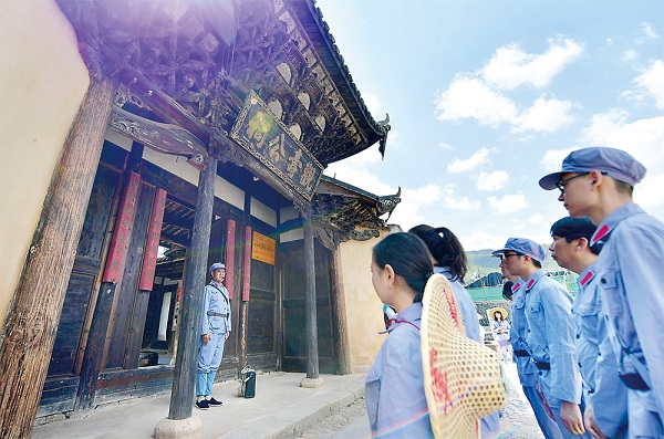 福建省長汀縣中復村的紅軍烈士后代向參觀學習的黨員干部講述長征的故事。 新華社記者 魏培全 攝