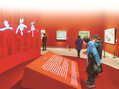 20世紀(jì)50年代以后,反映熱火朝天生活的藝術(shù)樣式漸漸成為主流,畫家們開(kāi)始在傳統(tǒng)筆墨中融入新的風(fēng)格。江蘇省美術(shù)館展廳展出了江蘇藝術(shù)群體“新金陵畫派”的作品。新金陵畫派是20世紀(jì)中國(guó)畫壇的重要畫派之一,畫家們倡導(dǎo)“思想變了,筆墨就不能不變”的藝術(shù)理念,在繼承傳統(tǒng)的基礎(chǔ)上以新筆墨反映時(shí)代的巨大變化。