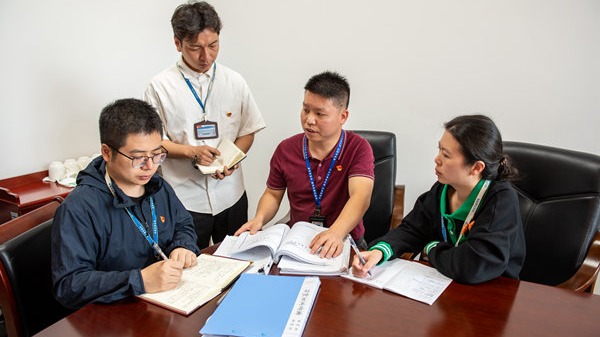 圖為唐玉軍(右二)正在與同事們一起研判問(wèn)題線(xiàn)索。張津 攝