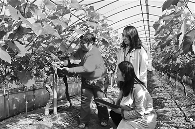 江蘇省東臺市紀(jì)委監(jiān)委開展護(hù)航農(nóng)村特色產(chǎn)業(yè)發(fā)展專項監(jiān)督,深入查糾鄉(xiāng)村振興項目資金監(jiān)管和涉農(nóng)補貼發(fā)放等方面存在的問題。圖為該市紀(jì)委監(jiān)委工作人員在葡萄種植大棚走訪了解相關(guān)情況。王茜 攝
