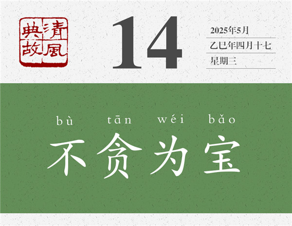 《幼學(xué)瓊林·珍寶》:“從吾所好,豈曰富而可求;有命存焉,當(dāng)以不貪為寶。”“寶”有物質(zhì)層面的,也有精神層面的。有些人為了追求物質(zhì)財(cái)富,而置道德操守甚至嚴(yán)刑峻法于不顧;不要說(shuō)別人主動(dòng)之“獻(xiàn)”,甚至還會(huì)采取各種手段去“索”。有些人為了自己的尊嚴(yán)和操守,則會(huì)視來(lái)意不明、來(lái)路不清之財(cái)寶為“糞土”,他們寧愿一生清貧,也不會(huì)在金銀財(cái)寶面前心理失衡,不會(huì)在誘惑面前人格失守。