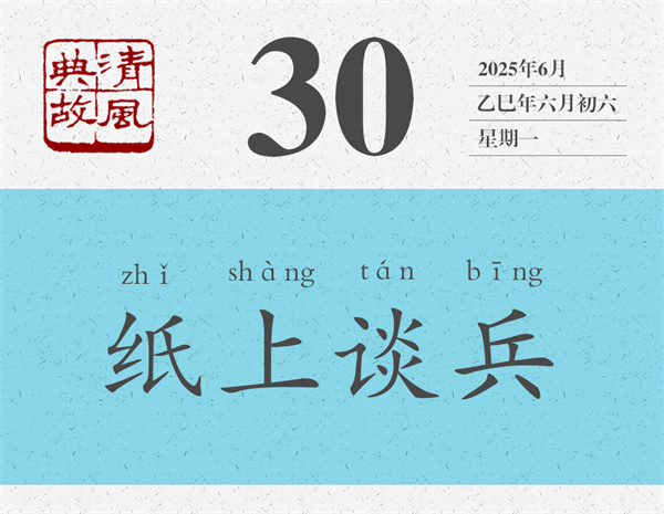 這就是歷史上著名的長(zhǎng)平之戰(zhàn)。后人即根據(jù)趙括只會(huì)照搬兵書(shū)而不知變通之事,引申出“紙上談兵”之典,比喻只會(huì)紙上空談,而不能解決實(shí)際問(wèn)題,或者只會(huì)空發(fā)議論,而得不到真正落實(shí)。清人張問(wèn)陶詩(shī)《即事》:“紙上談兵壁上觀(guān),立言先慮立功難。”