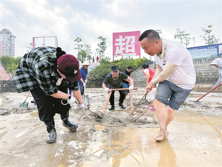 廣西壯族自治區(qū)柳州市融安縣紀(jì)委監(jiān)委聞“汛”而動(dòng),緊盯防汛統(tǒng)籌協(xié)調(diào)等關(guān)鍵環(huán)節(jié)開展全程監(jiān)督檢查。圖為日前,該縣紀(jì)檢監(jiān)察干部在河?xùn)|龍舟廣場開展災(zāi)后清淤工作。覃燕 攝
