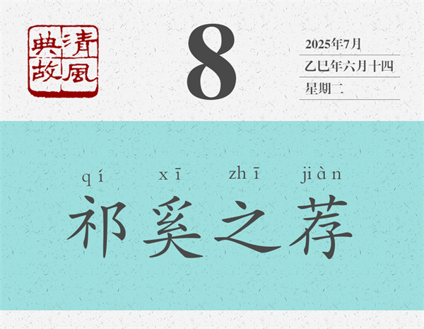 左丘明認(rèn)為,祁奚才是真正能舉薦賢能的人:“稱其仇,不為諂;立其子,不為比;舉其偏,不為黨。”意思是,祁奚推舉他的仇人,不是為了諂媚;推薦自己的兒子,不是出于偏愛;推薦自己的下屬,不是為了結(jié)黨營私?!秴问洗呵铩贩Q:“外舉不避仇,內(nèi)舉不避子,祁黃羊可謂公矣。”后世即以“祁奚之薦”為典,形容舉薦人才心胸開闊,公正無私。唐人姚元崇《答張九齡書》:“歷官三朝,年逾一紀(jì),凡所稱薦,罕避嫌疑,實有祁奚之舉。”