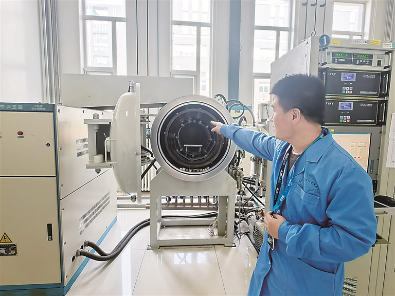 中國科學院空天信息創(chuàng)新研究院行波管工藝技術負責人劉泳良介紹高溫真空釬焊爐的用途。左翰嫡 攝