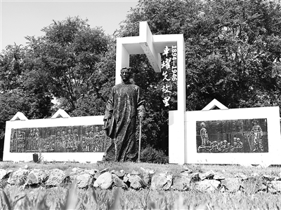 四川省成都市大邑縣悅來(lái)鎮(zhèn)的車耀先烈士塑像。吳蓮 攝