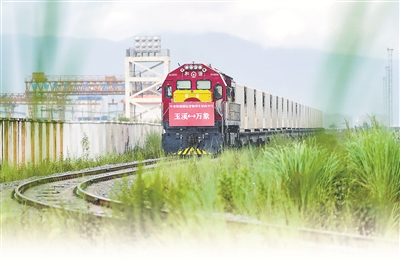 8月23日,前往老撾萬(wàn)象的國(guó)際貨物列車駛出中老鐵路中國(guó)玉溪研和站。當(dāng)日,中老鐵路國(guó)際貨物列車(玉溪—萬(wàn)象)實(shí)現(xiàn)雙向開(kāi)行。新華社記者 陳欣波 攝