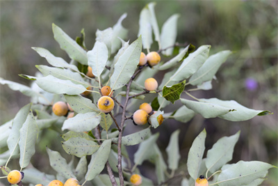 簡介:君遷子,落葉喬木。葉橢圓形,花淡黃色。花期4-5月,果期9-10月。成熟果實可生食或釀酒、制糖、制醋。果實藥用,可止消渴,去煩熱。木材質(zhì)硬、耐磨損,可做紡織木梭、雕刻、小用具等,且材色淡褐、紋理美麗,可做精美家具和文具。實生苗常作柿樹的砧木。