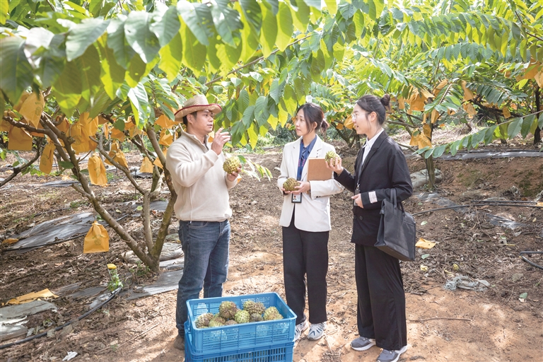 廣東省四會市紀委監(jiān)委把“百千萬工程”作為政治監(jiān)督的“頭號工程”來抓,圍繞產(chǎn)業(yè)發(fā)展、土地資金要素保障、干部作風等開展精準監(jiān)督。圖為近日,該市紀委監(jiān)委干部到逕口鎮(zhèn)釋迦果種植基地走訪了解有關(guān)情況。胡源 攝