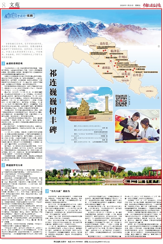 甘肅張掖又名甘州,位于河西走廊中段,是絲綢之路重鎮(zhèn),霍去病西征、張騫出塞都在此地留下了深深的足跡。這里還是一片紅色沃土,中國(guó)工農(nóng)紅軍西路軍2萬(wàn)余人,不怕?tīng)奚?、浴血奮戰(zhàn),書(shū)寫(xiě)了中國(guó)革命史上可歌可泣的壯麗詩(shī)篇。