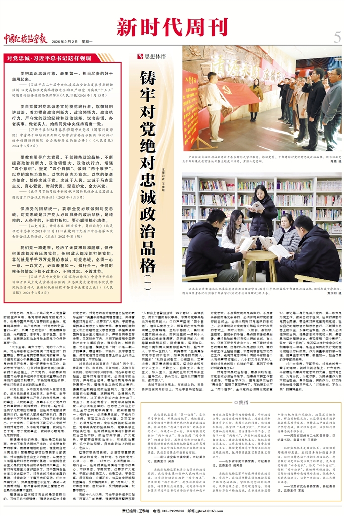 對(duì)廣大黨員、干部來(lái)說(shuō),對(duì)黨忠誠(chéng)是一輩子的課題。新時(shí)代新征程上,廣大黨員、干部要始終崇尚對(duì)黨忠誠(chéng)的大德,把對(duì)黨忠誠(chéng)、為黨分憂、為黨盡職、為民造福作為根本政治擔(dān)當(dāng),勇于擔(dān)當(dāng)、積極作為,以實(shí)際行動(dòng)詮釋中國(guó)共產(chǎn)黨人“對(duì)黨忠誠(chéng)、不負(fù)人民”的精神品質(zhì)。(記者 王雅婧)