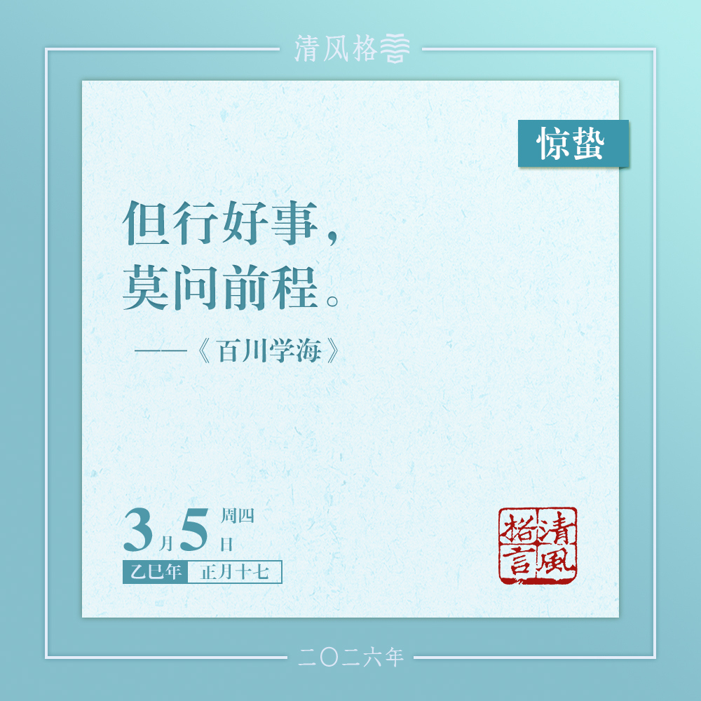 這兩句話可能也非馮道原創(chuàng),很多文獻(xiàn)都記載為“但行好事,莫問前程”的諺語。如《昨非庵日纂》援引宋代名臣趙抃的話說,有的人“說得一尺,行得一寸”,即我們常說的“語言的巨人,行動(dòng)的矮子”,還有的人“任他極有見識(shí)”“隨你極有聰明”,可一較真便會(huì)露餡,畢竟投機(jī)取巧的偽善,置于實(shí)實(shí)在在的真善之下都不堪一擊。趙抃以為,一心奉行“好事”的人,一定是認(rèn)真踏實(shí)、埋頭做事,甚至?xí)燥@“拙”態(tài)的人,因?yàn)檫@樣的人,往往樸實(shí)無華,心地?zé)o私。
