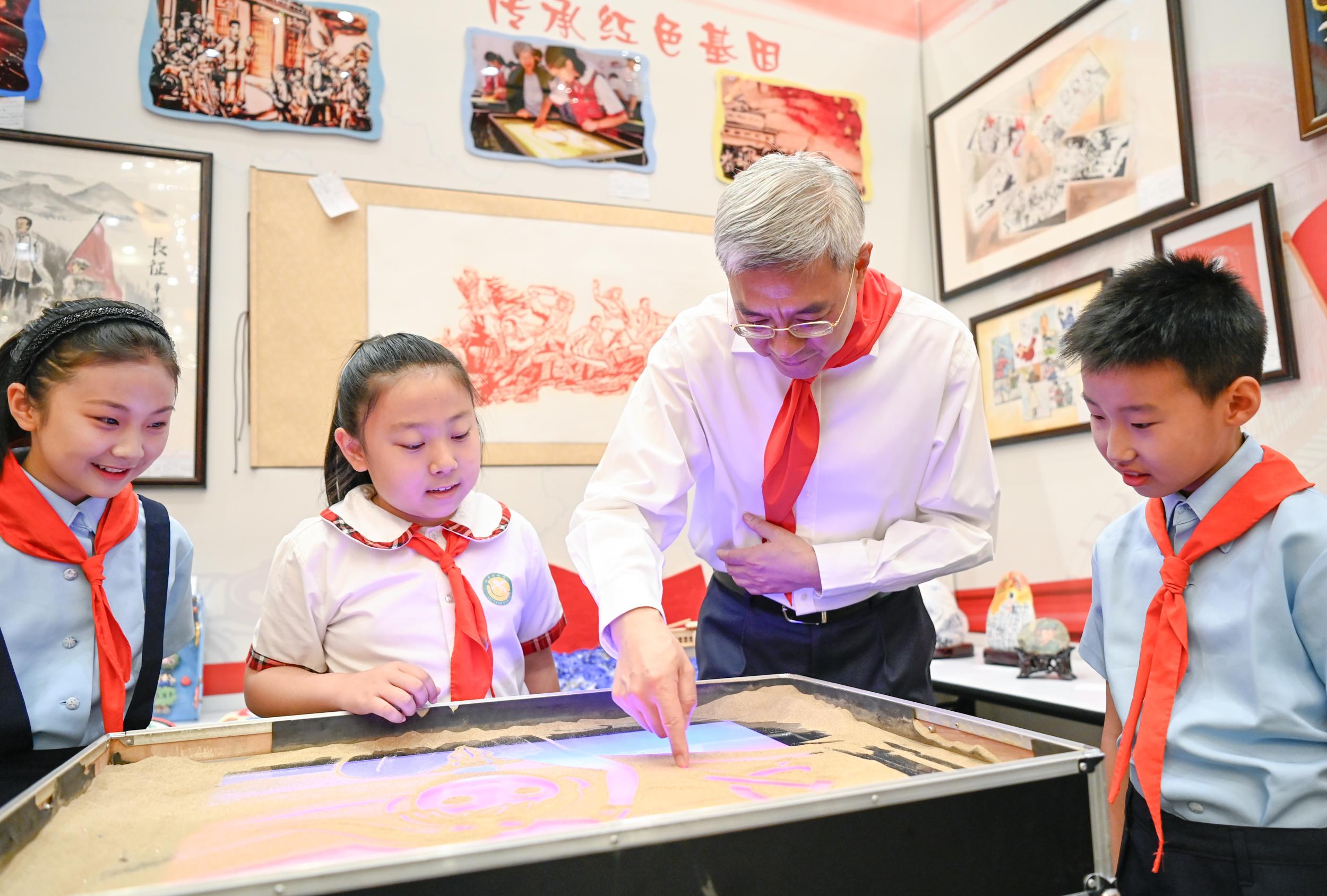 尹弘還參觀了“紅領(lǐng)巾心向黨慶祝建黨100周年”全省少先隊員優(yōu)秀作品展。