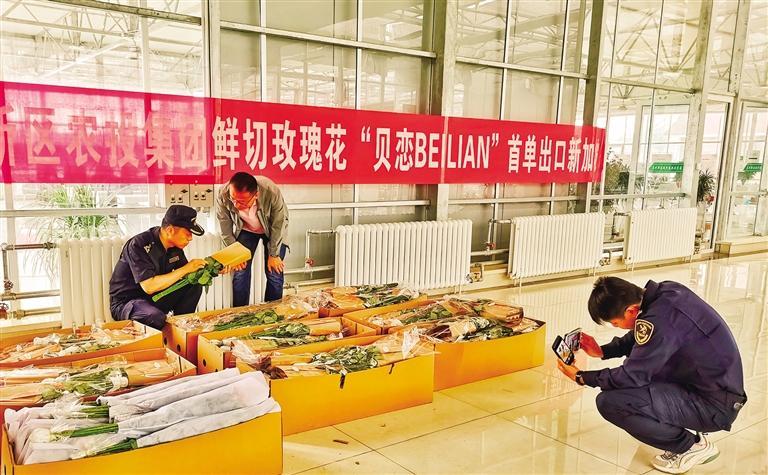 海關(guān)工作人員檢驗檢疫新區(qū)鮮切玫瑰花 張建平 攝