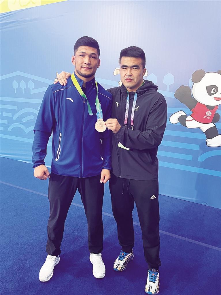 原標(biāo)題:甘肅選手木黑特·吐爾遜別克奪男子97公斤級(jí)銅牌