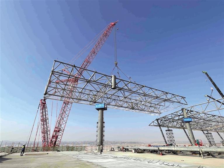 中國甘肅網(wǎng)12月30日訊 據(jù)蘭州日報(bào)報(bào)道(記者 薛曉霞)近日,蘭州中川國際機(jī)場三期擴(kuò)建工程航站樓D指廊鋼結(jié)構(gòu)完成封頂。