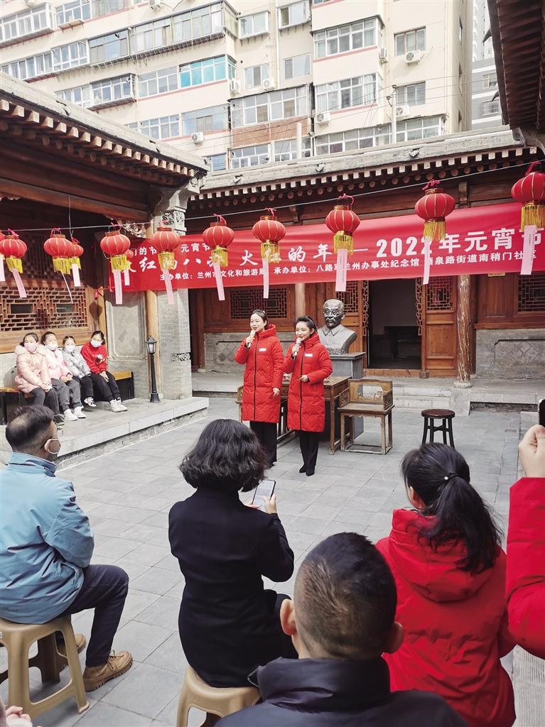 當(dāng)天的活動(dòng)在蘭州八辦講解員激情昂揚(yáng)的紅色情景劇《紅色驛站》中拉開帷幕,該劇深情回顧了抗戰(zhàn)初期發(fā)生在蘭州八辦的革命往事;情景劇結(jié)束后是我省曲藝表演藝術(shù)家王偉表演的相聲貫口,他風(fēng)趣幽默、出口成章的演出讓在座的觀眾掌聲如潮;接下來,酒泉路街道歌緣唱響藝術(shù)團(tuán)先后表演了精彩的歌舞節(jié)目。來自南關(guān)民族風(fēng)味一條街的少數(shù)民族市民表演了充滿民族特色的舞蹈《歡樂的麥西來普》,并在現(xiàn)場(chǎng)為大家奉上風(fēng)味濃郁、香甜可口的手工元宵,讓現(xiàn)場(chǎng)濃郁的節(jié)日氛圍達(dá)到高潮。