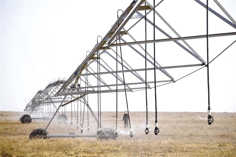 在農(nóng)投集團(tuán)現(xiàn)代牧草休閑示范園項(xiàng)目,平整一新的2.3萬(wàn)畝土地上,3組大型噴灌設(shè)備已經(jīng)投入緊張的工作中,隨著工作人員啟動(dòng)設(shè)備,噴灌機(jī)所過(guò)之處土地一片濕潤(rùn),空氣中充滿了泥土的清新。據(jù)現(xiàn)場(chǎng)負(fù)責(zé)人介紹,連續(xù)幾日,他們都在緊鑼密鼓開(kāi)展春灌工作,利用大型噴灌設(shè)備,不僅實(shí)現(xiàn)了水資源的高效利用,而且減少了人力投入,工作效率更高。